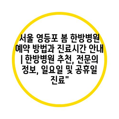 서울 영등포 봄 한방병원 예약 방법과 진료시간 안내 | 한방병원 추천, 전문의 정보, 일요일 및 공휴일 진료”