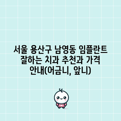 서울 용산구 남영동에서 추천하는 임플란트 치과는 다음과 같습니다. 이들 치과는 의료진의 전문성, 환자 후기, 및 가격을 종합적으로 고려하여 선정되었습니다.