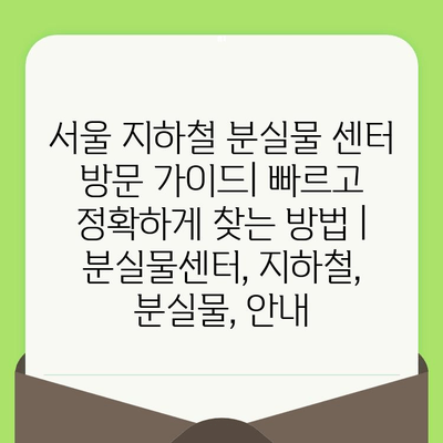 ✅ 서울 지하철 분실물 센터에서 내 소중한 물건을 찾을 수 있을까요? 분실물 센터 방문 전 꼭 알아야 할 정보들을 확인해 보세요!