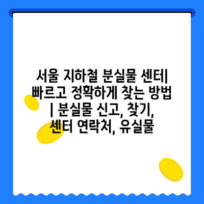 서울 지하철 분실물 센터| 빠르고 정확하게 찾는 방법 | 분실물 신고, 찾기, 센터 연락처, 유실물