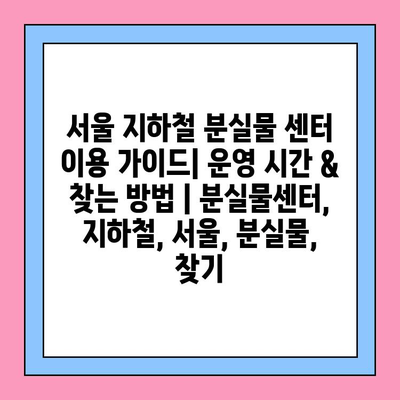 서울 지하철 분실물 센터 이용 가이드| 운영 시간 & 찾는 방법 | 분실물센터, 지하철, 서울, 분실물, 찾기