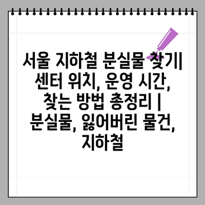 ✅ 서울 지하철 분실물 센터 위치, 운영 시간, 찾는 방법 등 모든 정보를 한눈에 확인하세요!