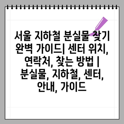 ✅ 서울 지하철 분실물 센터 위치와 연락처를 한눈에 확인하세요!