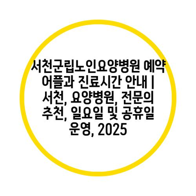 서천군립노인요양병원 예약 어플과 진료시간 공지 | 서천, 요양병원, 전연락 추천, 일요일 및 공휴일 운영, 2025 에 대해 자주 묻는 질문 TOP 5