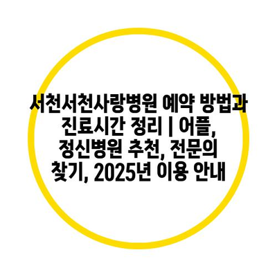 서천서천사랑병원 예약 방법과 진료시간 정리 | 어플, 정신병원 추천, 전문의 찾기, 2025년 이용 안내