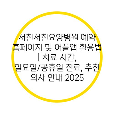 서천서천요양병원 예약 홈페이지 및 어플앱 활용법 | 치료 시간, 일요일/공휴일 진료, 추천 의사 공지 2025에 대해 알아보겠습니다.