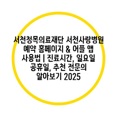 서천청목의료재단 서천사랑병원 예약 홈페이지 & 어플 앱 사용법 | 진료시간, 일요일 공휴일, 추천 전연락 알아보기 2025에 대해 자주 묻는 질문 TOP 5