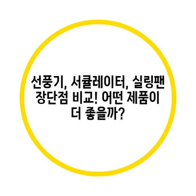 선풍기, 서큘레이터, 실링팬 각각의 장단점을 정리하여 여러분의 선택에 도움이 되길 바랍니다. 간단히 요약하자면: