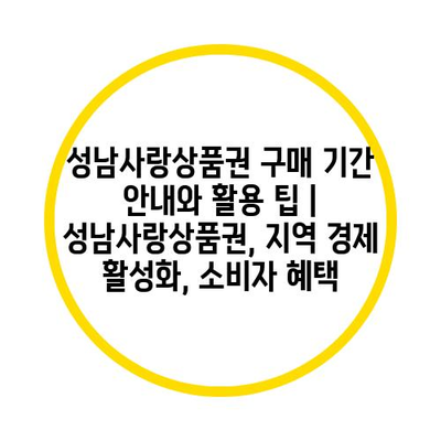 성남사랑제품권 구매 날짜 공지와 활용 팁 | 성남사랑제품권, 지역 경제 활성화, 소비자 혜택 에 대해 자주 묻는 질문 TOP 5