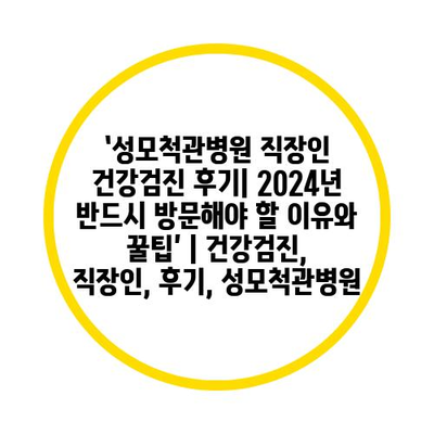 ‘성모척관병원 직장인 건강검진 후기| 2024년 반드시 방문해야 할 이유와 꿀팁’ | 건강검진, 직장인, 후기, 성모척관병원 에 대해 자주 묻는 질문 TOP 5