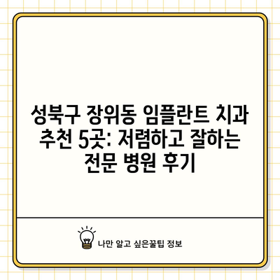 💡 성북구 장위동에서 믿을 수 있는 임플란트 치과를 찾아보세요. 💡