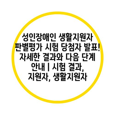 성인장애인 생활지원자 판별평가 시험 당첨자 발표! 자세한 결과와 다음 단계 안내 | 시험 결과, 지원자, 생활지원자