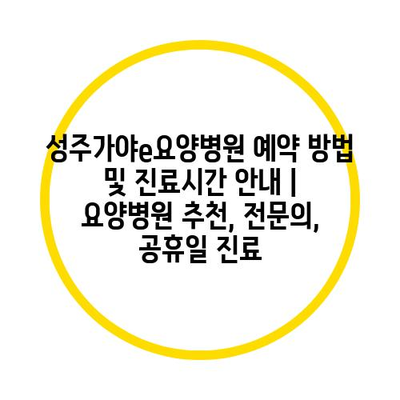 ✅ 성주가야e요양병원의 예약 및 진료시간을 한눈에 확인해 보세요.