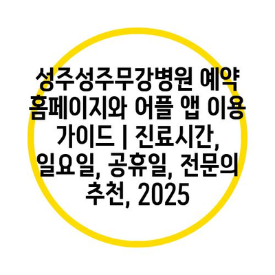 성주성주무강병원 예약 홈페이지와 어플 앱 이용 가이드 | 진료시간, 일요일, 공휴일, 전문의 추천, 2025