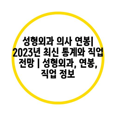 성형외과 의사 연봉| 2023년 최신 통계와 직업 전망 | 성형외과, 연봉, 직업 정보