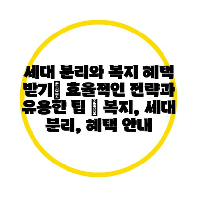 세대 분리와 복지 혜택 받기| 효율적인 전략과 유용한 팁 | 복지, 세대 분리, 혜택 공지 에 대해 자주 묻는 질문 TOP 5