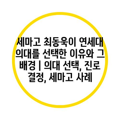 세마고 최동욱이 연세대 의대를 선택한 이유와 그 배경 | 의대 선택, 진로 결정, 세마고 사례 에 대해 자주 묻는 질문 TOP 5