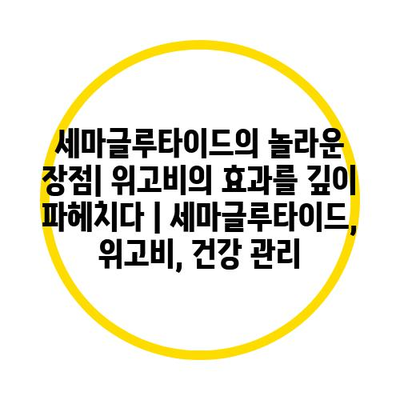 세마글루타이드의 놀라운 장점| 위고비의 효과를 깊이 파헤치다 | 세마글루타이드, 위고비, 건강 관리에 대해 자주 묻는 질문 TOP 5