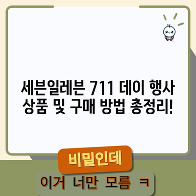 세븐일레븐 711 데이 행사 상품, 구매 방법 및 이벤트 참여에 대해 알아보세요! 대규모 할인 혜택이 기다리고 있습니다.