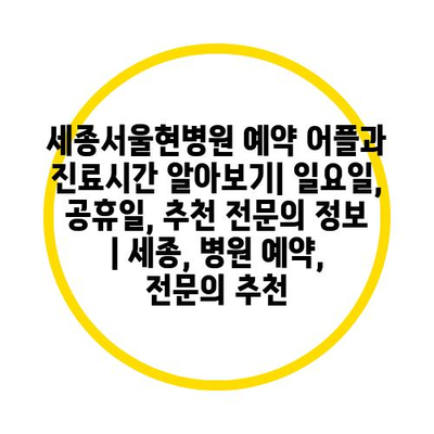 세종서울현병원 예약 어플과 진료시간 알아보기| 일요일, 공휴일, 추천 전연락 정보 | 세종, 병원 예약, 전연락 추천 에 대해 자주 묻는 질문 TOP 5