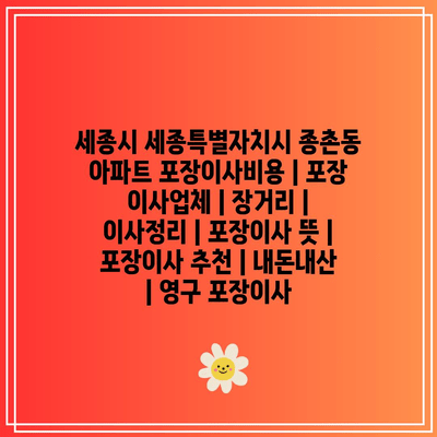 세종시 세종특별자치시 종촌동 아파트 포장이사비용 | 포장 이사업체 | 장거리 | 이사정리 | 포장이사 뜻 | 포장이사 추천 | 내돈내산 | 영구 포장이사에 대해 자주 묻는 질문 TOP 5