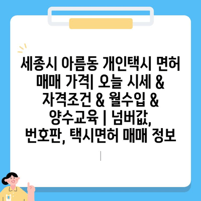세종시 아름동 개인택시 면허 매매 가격| 오늘 시세 & 자격조건 & 월수입 & 양수교육 | 넘버값, 번호판, 택시면허 매매 정보