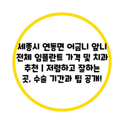 세종시 연동면 어금니 앞니 전체 임플란트 가격 및 치과 추천 | 저렴하고 잘하는 곳, 수술 날짜과 팁 공개!