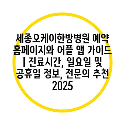 세종오케이한방병원 예약 홈페이지와 어플 앱 설명서 | 진료시간, 일요일 및 공휴일 정보, 전연락 추천 2025 에 대해 자주 묻는 질문 TOP 5