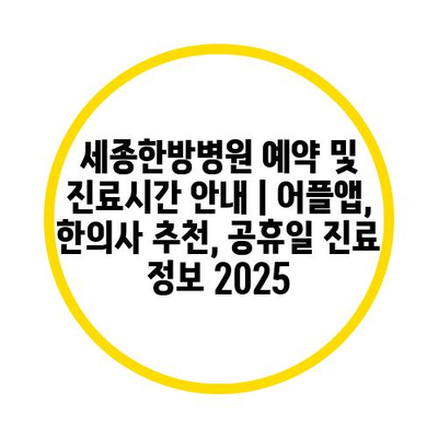 세종한방병원 예약 및 진료시간 안내 | 어플앱, 한의사 추천, 공휴일 진료 정보 2025