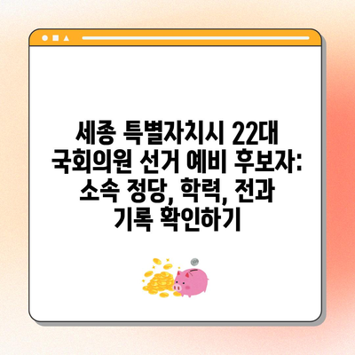 2024년 세종 특별자치시 22대 국회의원 선거 예비 후보자들의 소속정당, 학력 및 전과 이력을 자세히 알아보세요.