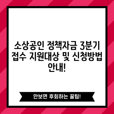 💡 소상공인 정책자금 지원 내용과 신청 방법을 지금 바로 알아보세요! 💡