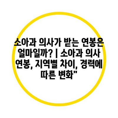 소아과 의사가 받는 연봉은 얼마일까? | 소아과 의사 연봉, 지역별 차이, 경력에 따른 변화”