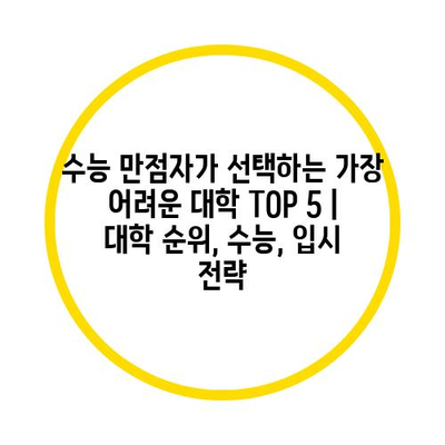 수능 만점자가 선택하는 가장 어려운 대학 TOP 5에 대해 알아보겠습니다.