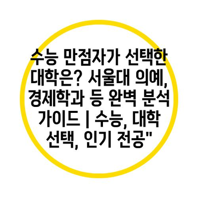 수능 만점자는 많은 수험생들의 목표이며, 이들이 선택하는 전공은 여러 요인에 의해 결정됩니다. 이 글에서는 수능 만점자들이 선호하는 전공들을 분석하고, 특히 서울대학교 입학 후의 전공 선택에 대해 자세히 살펴보겠습니다.