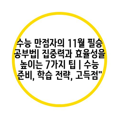수능 만점자의 11월 필승 공부법| 집중력과 효율성을 높이는 7가지 팁 | 수능 준비, 학습 전략, 고득점