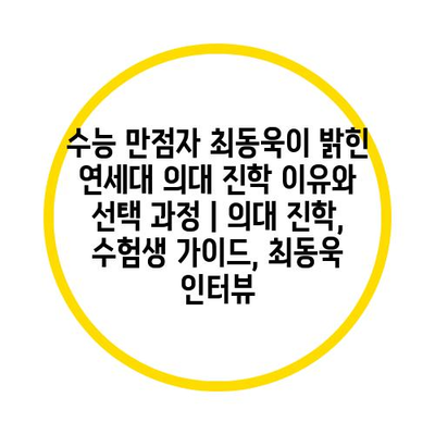수능 만점자 최동욱이 연세대 의대를 선택한 이유와 그 과정에 대해 많은 이들이 궁금해하고 있습니다.