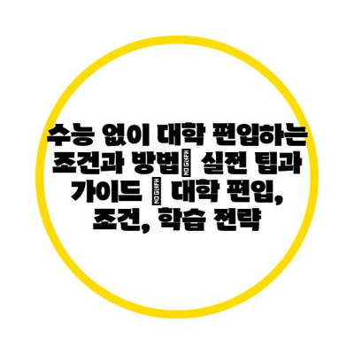 수능 없이 대학 편입하는 조건과 방법| 실전 팁과 가이드 | 대학 편입, 조건, 학습 전략