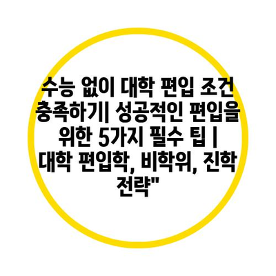 수능 없이 대학 편입 조건 충족하기| 성공적인 편입을 위한 5가지 필수 팁 | 대학 편입학, 비학위, 진학 전략