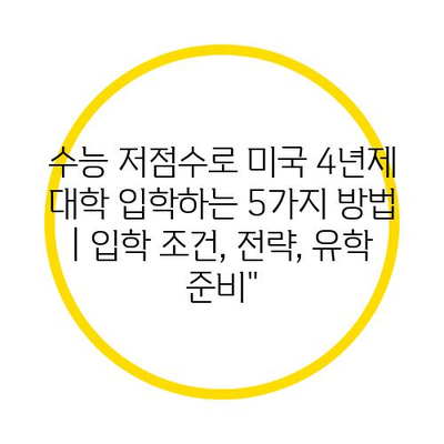 수능 저점수로 미국 4년제 대학 입학하는 5가지 방법 | 입학 조건, 전략, 유학 준비”