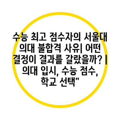 수능 최고 점수자의 서울대 의대 불합격 사유| 어떤 결정이 결과를 갈랐을까?