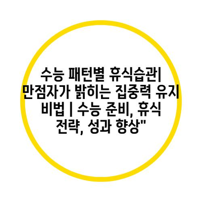 수능 패턴별 휴식습관| 만점자가 밝히는 집중력 유지 비법 | 수능 준비, 휴식 전략, 성과 향상”