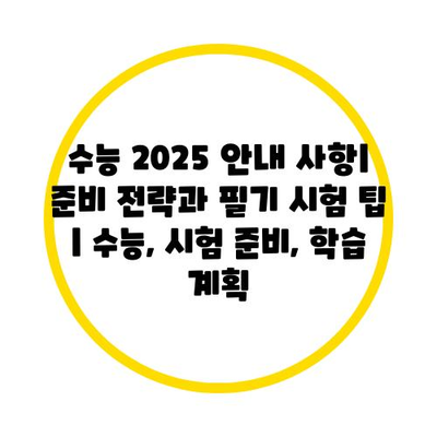 수능 2025 공지 사항| 준비 전략과 필기 시험 팁 | 수능, 시험 준비, 학습 계획 에 대해 자주 묻는 질문 TOP 5