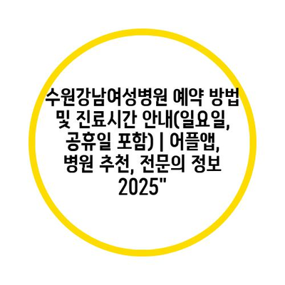 ✅ 수원강남여성병원 예약 방법을 자세히 알아보세요.