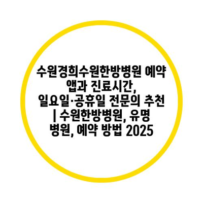 수원경희수원한방병원 예약 앱과 진료시간, 일요일·공휴일 전연락 추천 | 수원한방병원, 유명 병원, 예약 방법 2025 에 대해 자주 묻는 질문 TOP 5