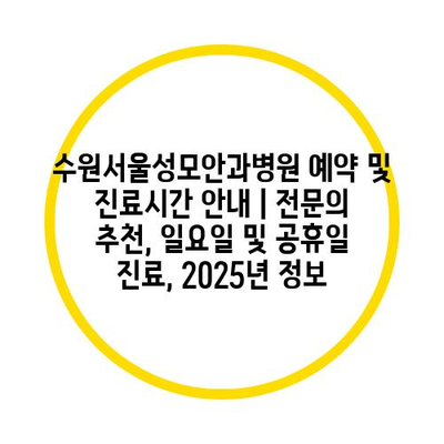 수원서울성모안과병원 예약 및 진료시간 공지 | 전연락 추천, 일요일 및 공휴일 진료, 2025년 정보 에 대해 자주 묻는 질문 TOP 5
