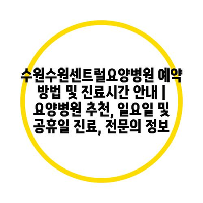 수원수원센트럴요양병원 예약 방법 및 진료시간 공지 | 요양병원 추천, 일요일 및 공휴일 진료, 전연락 정보 에 대해 자주 묻는 질문 TOP 5
