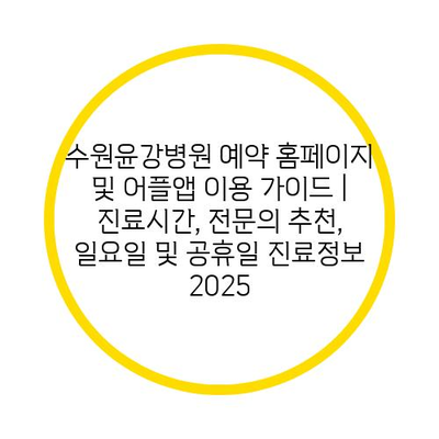 수원윤강병원 예약 홈페이지 및 어플앱 이용 설명서 | 진료시간, 전연락 추천, 일요일 및 공휴일 진료정보 2025 에 대해 자주 묻는 질문 TOP 5