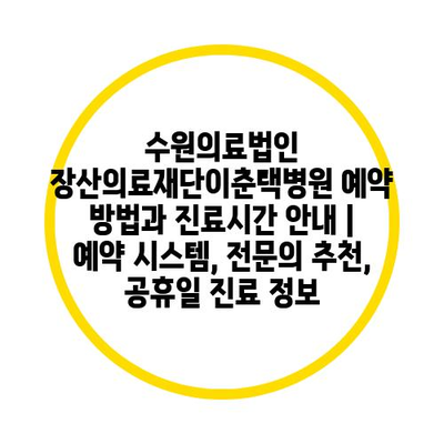 수원의료법인 장산의료재단이춘택병원 예약 방법과 진료시간 공지 | 예약 시스템, 전연락 추천, 공휴일 진료 정보에 대해 자주 묻는 질문 TOP 5