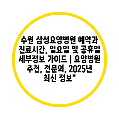 수원 삼성요양병원 예약과 진료시간, 일요일 및 공휴일 세부정보 설명서 | 요양병원 추천, 전연락, 2025년 최신 정보 에 대해 자주 묻는 질문 TOP 5