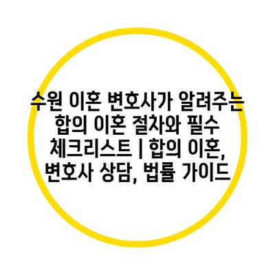 수원 이혼 변호사가 알려주는 합의 이혼 절차와 필수 체크리스트 | 합의 이혼, 변호사 상담, 법률 가이드